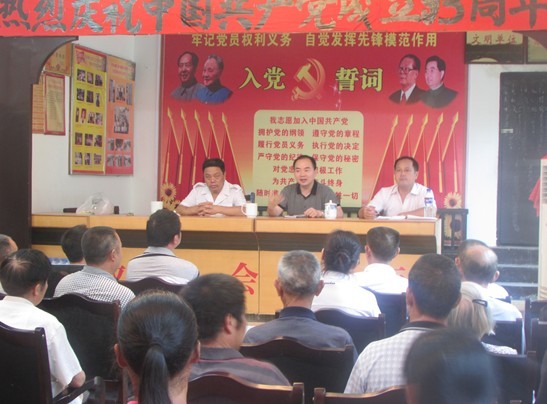 6月27日上午,梅仙镇石塘村为庆祝中国共产党成立93周年召开党员工作会议。镇党委书记李三军、卫生局合管中心主任朱志坚等县级领导和全村党员参加会议。