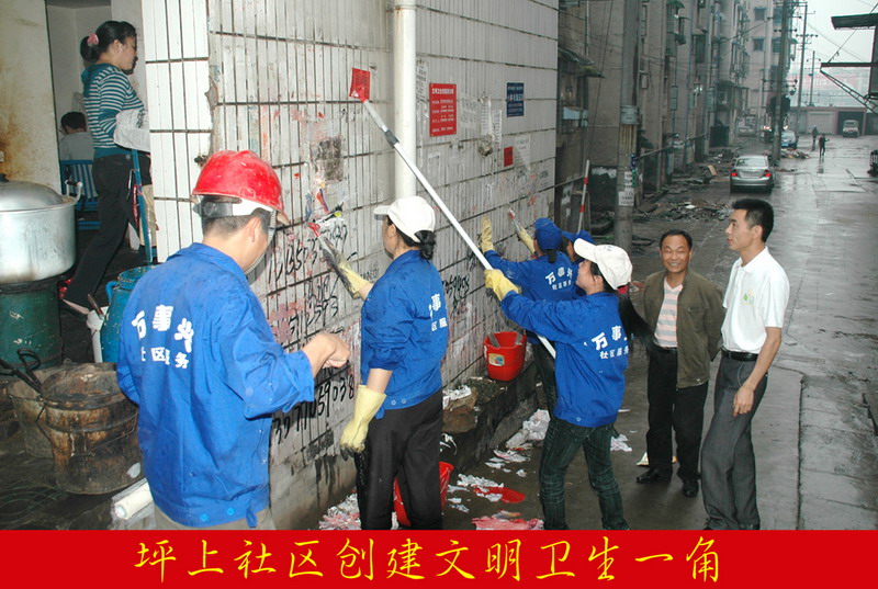 钢丝刷铲除墙上的广告,沥青刷地面上的广告……今日上午,城关镇坪上社区组织百余名环卫志愿者在碧潭新村、新村路等地,对行人乱扔乱丢等不文明行为进行劝导和制止,认真清除绿化带里的白色污染物和墙面残留的“牛皮癣”。