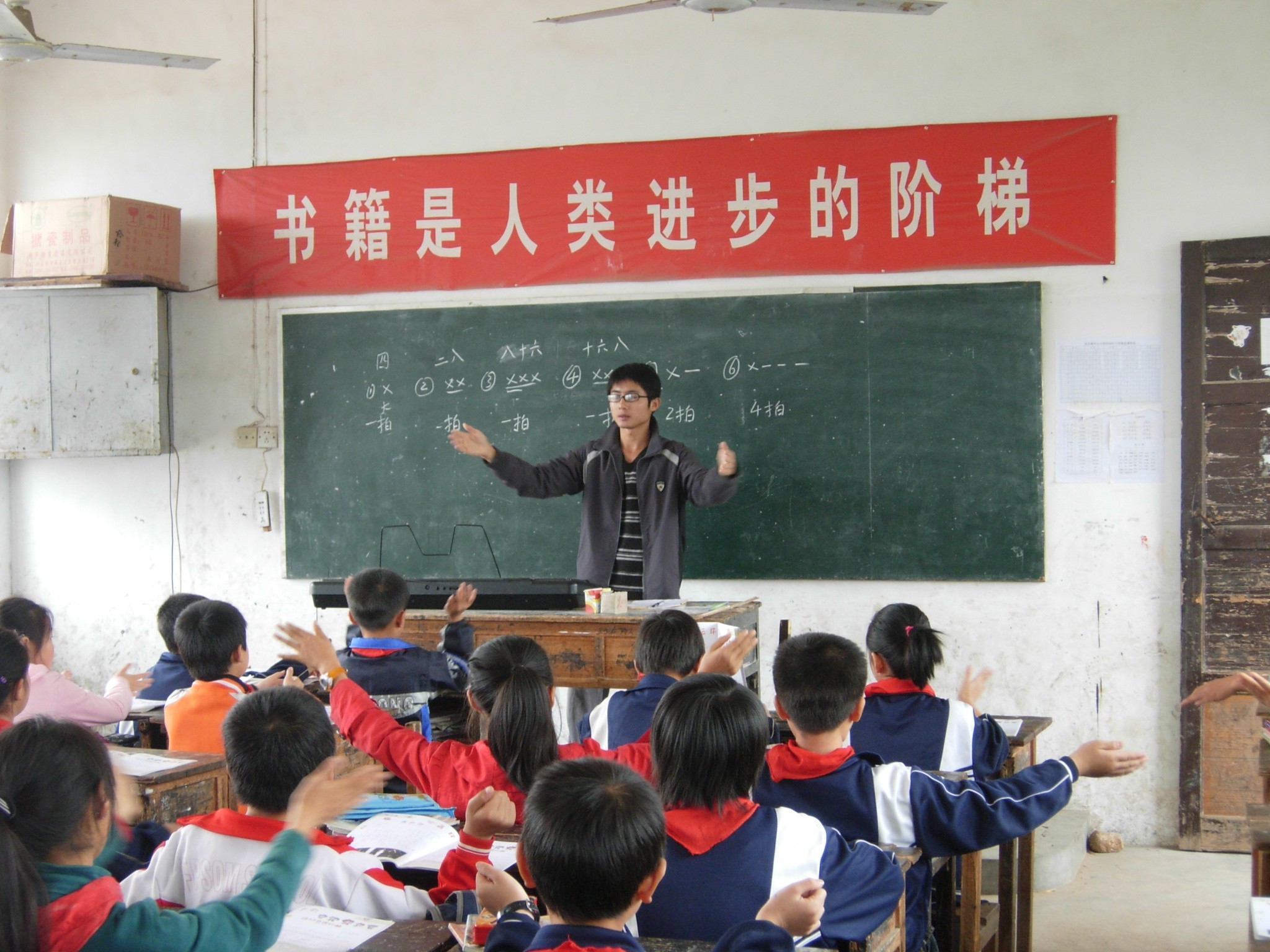 开学两个月来,加义镇中心小学的孩子们上学更积极,学习更认真了,要问起上学为什么快乐?他们都会响亮的回答:因为我们有专业老师了!加义镇中心小学有着四位特岗教师,他们是八月份走进老区支教的122位特岗教师中的成员,他们年轻有为,以丰富的知识、独有的特长、不怕苦不怕累的精神以及对教育的无限热爱为山区孩子们描绘了一片精彩的艺术蓝天,为他们增添了一份学习的乐趣。瞧,老师和孩子们多么的投入!