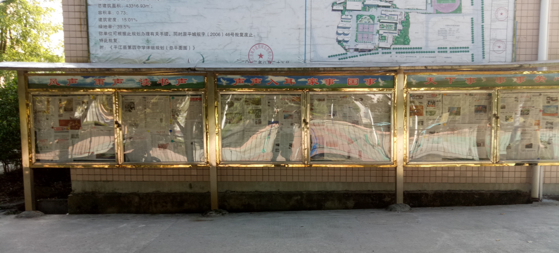 据悉,为进一步提高师生读报用刊的积极性和写作能力,培养良好的阅读习惯,该校请来广告公司人员,冒雨将原来模糊不清的有机玻璃全部撤下,花费近6000余元重新装上了6块加厚的高清有机玻璃,请来电工重新焊接加固了不锈钢亭,并安装电棒,让师生随时可以进行阅读。“这下好看多了,原来我是戴着老花眼镜寻字,现在不戴眼镜也看得清清楚楚,多亏学校为我们退休老师想得周到。”一向热心关注时政新闻、擅长写作的陈列凡老师由衷地说。从10月份起,改由办公室专职人员管理报刊发行与换发工作,其中《人民日报》《中国教育报》《湖南日报》《岳阳日报》《平江通讯》为必展报类。另外,单独辟出一栏展出本校在各级新闻媒体上发表的校园新闻,让大家进一步增强集体荣誉感和使命感,进一步弘扬社会主义核心价值观。
