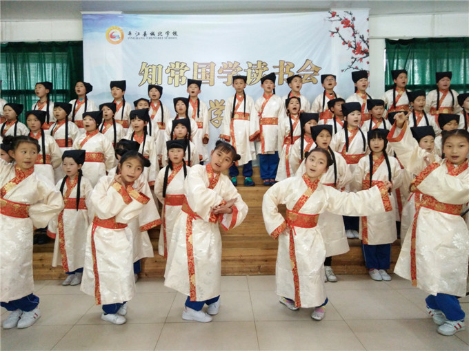 “感谢李统兴博士一直对我校和我县教育工作的支持,也热烈欢迎他所带领的研修团队来我校举行意义重大的活动……”致欢迎词时,城北学校校长刘实明深表感激之情,并介绍了学校近几年国学教育活动的开展情况以及所取得的成绩。刘校长无比投入,亲自吟诵《忆江南》与大家互动,将现场气氛推向高潮。