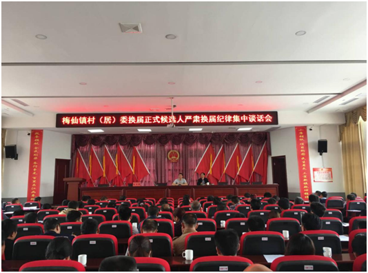 5月15日上午,梅仙镇召开村(居)委换届正式候选人严肃换届纪律集中谈话会,全体村(居)委正式候选人共计137人参加会议,会议由镇人大主席彭中华主持。