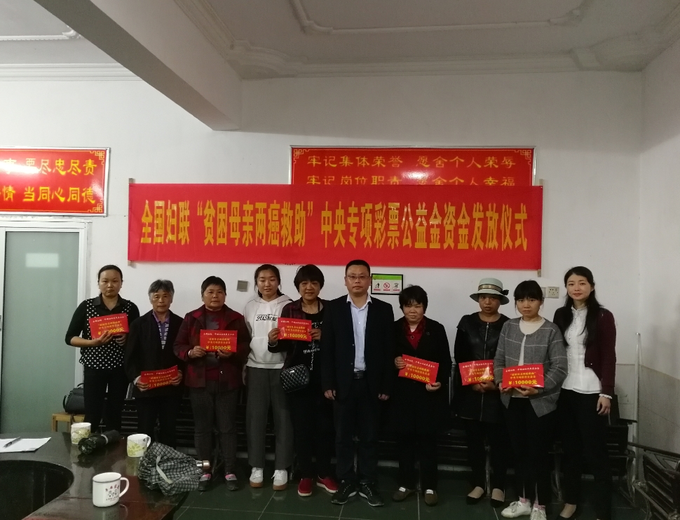4月12日下午,三市镇举行全国妇联“贫困母亲‘两癌’救助”中央专项彩票公益金发放仪式,为全镇9名符合救助条件的农村“两癌”贫困母亲发放救助专项基金9万元。镇党委书记熊昭明、政协联络办主任、副镇长戴崔平出席会议,会议由镇妇联主席黄吉林主持。