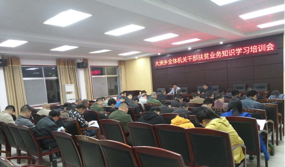 4月15日18:30大洲乡召开精准扶贫业务培训会,全体机关干部与会,会议由乡党委副书记陈迎春主持。
