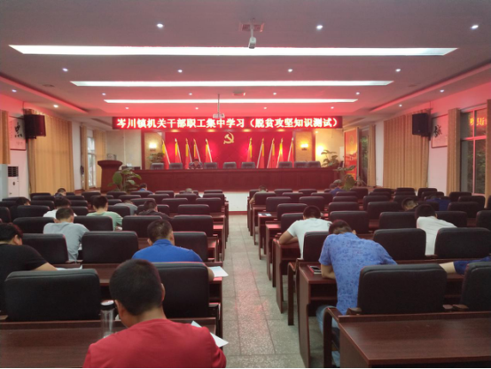 5月2日,岑川镇组织全体机关干部职工50余人进行脱贫攻坚知识测试。
