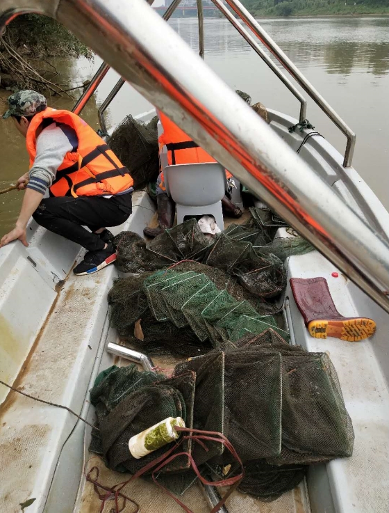 5月10日上午,县渔政站站长何淼鑫带队联合城关镇农技中心、畜牧站等相关工作人员,沿汨罗江界山庙两岸沿线至汨水桥两岸沿线巡查。自河道水中取出串网、绝户网、地笼等非法捕鱼工具共计28副。