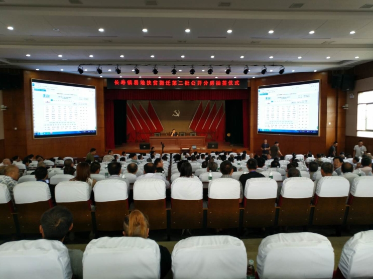 8月17日,长寿镇易地搬迁扶贫集镇安置第二批分房仪式在将军希望学校报告厅举行,315户贫困户参与分房。