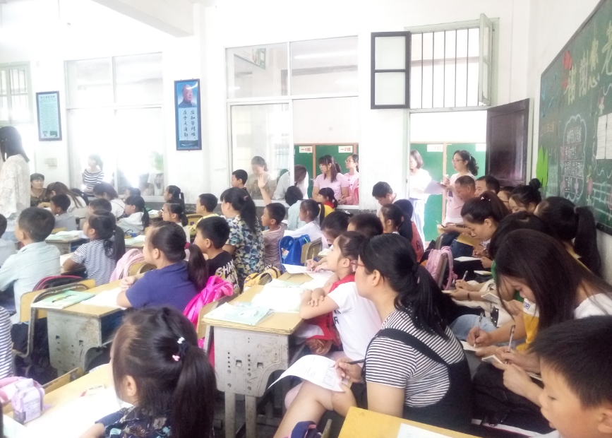 在本次交流研讨活动中,根据事先提议,长寿镇中心学校率先以“如何上好一堂完整的课”为研讨主题,安排了三名骨干教师主讲语、数、外示范课,旨在为各校青年教师和新进的特岗、定岗教师提供示范。由于参与的人数较多,稍稍来迟了一点的教师不得不挤在窗户外的走廊上听课。尽管如此,老师们听得还是很认真,记录很详细,在随后举行的交流、研讨活动中发言也很积极。
