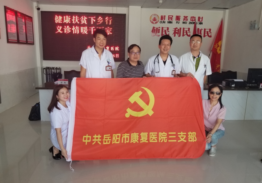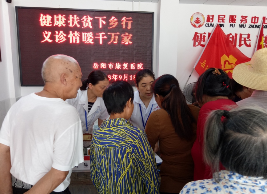9月18日,岳阳市康复医院到结对帮扶村忘私村开展扶贫义诊,市民政局副局长周伟祥出席活动。