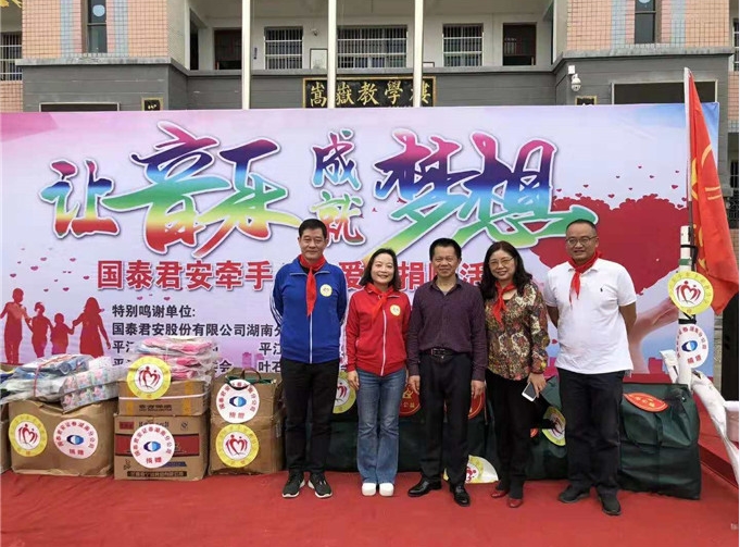 11月3日,伍市学校气球高悬、彩旗飘扬,平江首个“音乐教室”公益捐赠活动正在该校浓情上演。来自国泰君安证券股份有限公司湖南分公司总经理尹萍一行,携手平江手牵手助教协会、长沙快乐公益等公益协会参加捐赠活动。