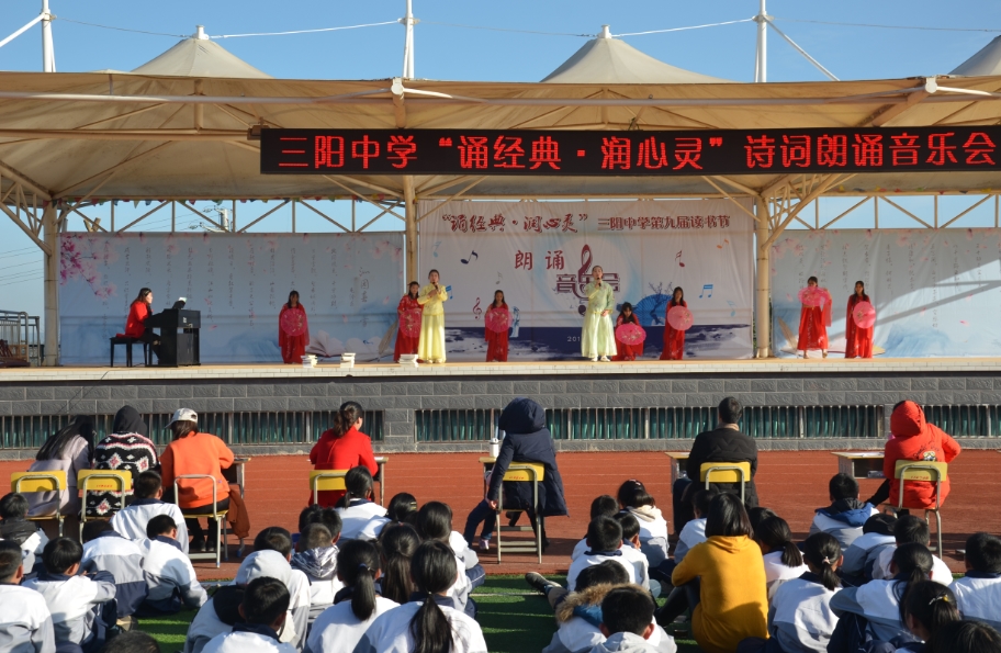 据悉,“诵经典·润心灵”节朗诵音乐会是三阳中学第九届读书节活动的重要组成部分,目的是用经典滋养心灵,以文化浸润生命,让阅读成为一种生活习惯。鼓励师生沐浴于书香,徜徉于书海,与好书为友,和先哲对话,提高个人修养,丰富文化底蕴,促进学校内涵式文化发展和书香校园的建设。 (邓望成)
