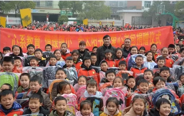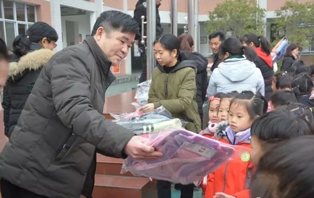 12月17日上午,长寿镇“金太阳书店”李总一行3人在长寿镇中心学校举办了一场“爱心书包”捐赠仪式。