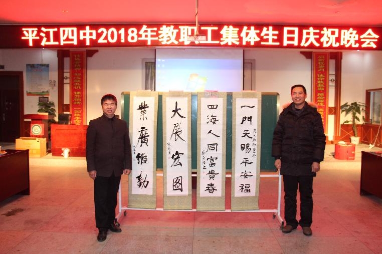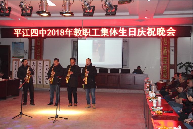 为强化人文关怀,提升职业幸福感与归属感,让老师们在忙碌的工作之余留下一份甜蜜的回忆,感受学校大家庭的温暖,携着2019新年的喜悦与祝福,1月2日晚,由平江四中教育工会组织举办的下半年教职工集体生日晚会在学校会议室隆情举行。晚会感恩主题明确,节目喜乐高雅,现场气氛热烈,学校领导与90多位“寿星”欢聚一堂,热闹非凡,其乐融融。