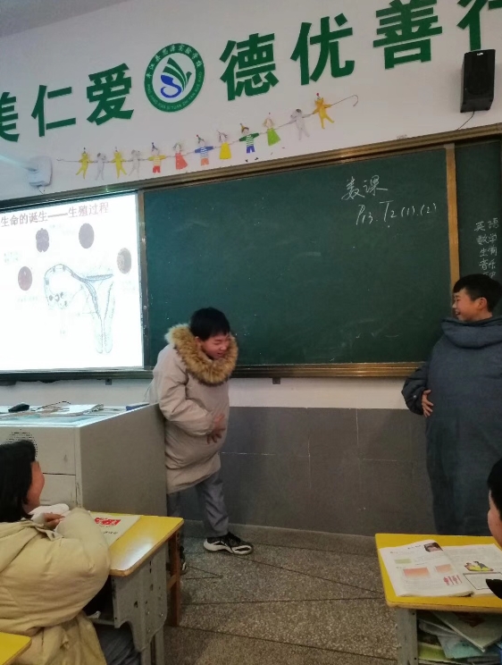 课堂伊始,金老师妙语连珠,趣味置疑,既消除了学生对学习该节知识内容的羞涩,又激发学生学习的兴趣;课中,金老师以其娴熟的教学技巧,层层深入,授导相融,教学重难点迎刃而解;特别值得一提的是:在教学末尾,金老师还精心设计了角色代入环节:提前准备好孕妇角色的各类道具,让男生上台亲身体验孕妇的艰辛与不易,男生们“大腹便便”的企鹅步让在场同学笑到泪飙之余,也初步意识到了妈妈十月怀胎的艰辛与不易。金老师适时旁敲侧击,激发学生对生命的敬畏之情,体会父母对自己的无私之爱,感恩教育于无形中就此渗透到了每一位孩子的心间。一堂课下来,学生们时而疑惑不解,时而了然于心,时而捧腹大笑,时而若有所思……