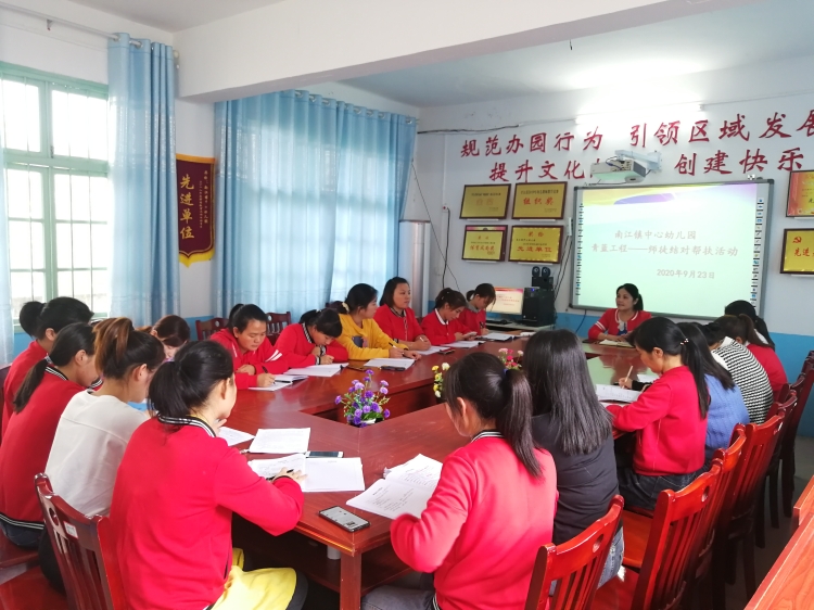 9月23日,南江镇中心幼儿园20名老师相约在会议室举行了简短而有意义的新学期“青蓝结对”仪式,活动由该园园长李英主持,主题为“青蓝携手,美丽遇见”。