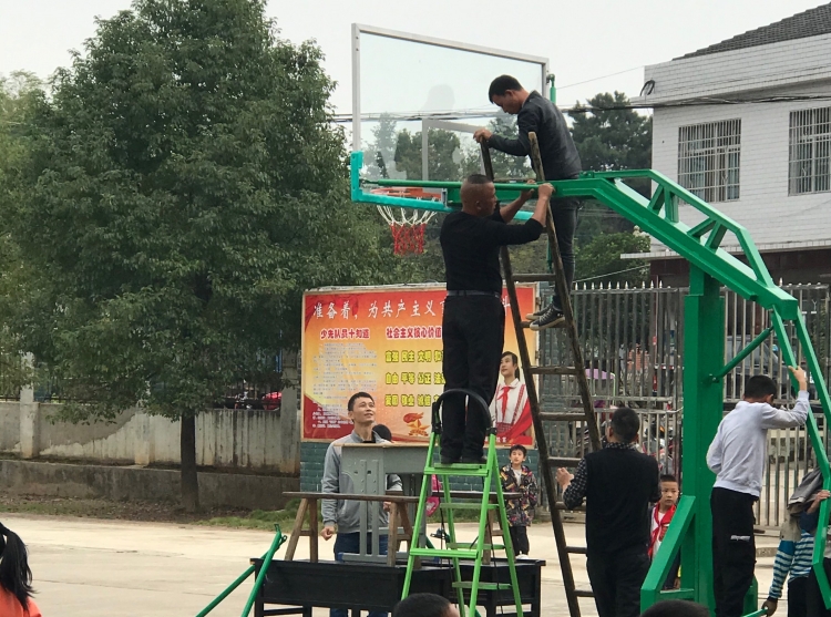甲山学校毛一新校长乐呵呵地忙碌着,他召集了学校男老师及附近的几位学生家长一起动手安装篮球框架,另一边安排其他老师带领着高年级的孩子们一起登记这些体育器材和设备,他和孩子们也一样,想快点让这些崭新的“伙伴”快点分到每一位孩子的手中,让孩子们得到锻炼和放松,为校园带来活力与快乐。