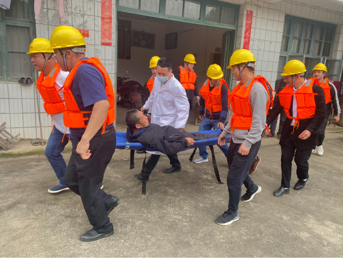 此次演练背景模拟余坪镇近日连续暴雨到大暴雨情况,河水持续上涨,部分河堤冲塌,景福村黄金水库发生险情,洪水对附近群众的生命财产造成威胁,防汛形势严峻,需要立即将低洼地带群众转移到高处安全地区。
