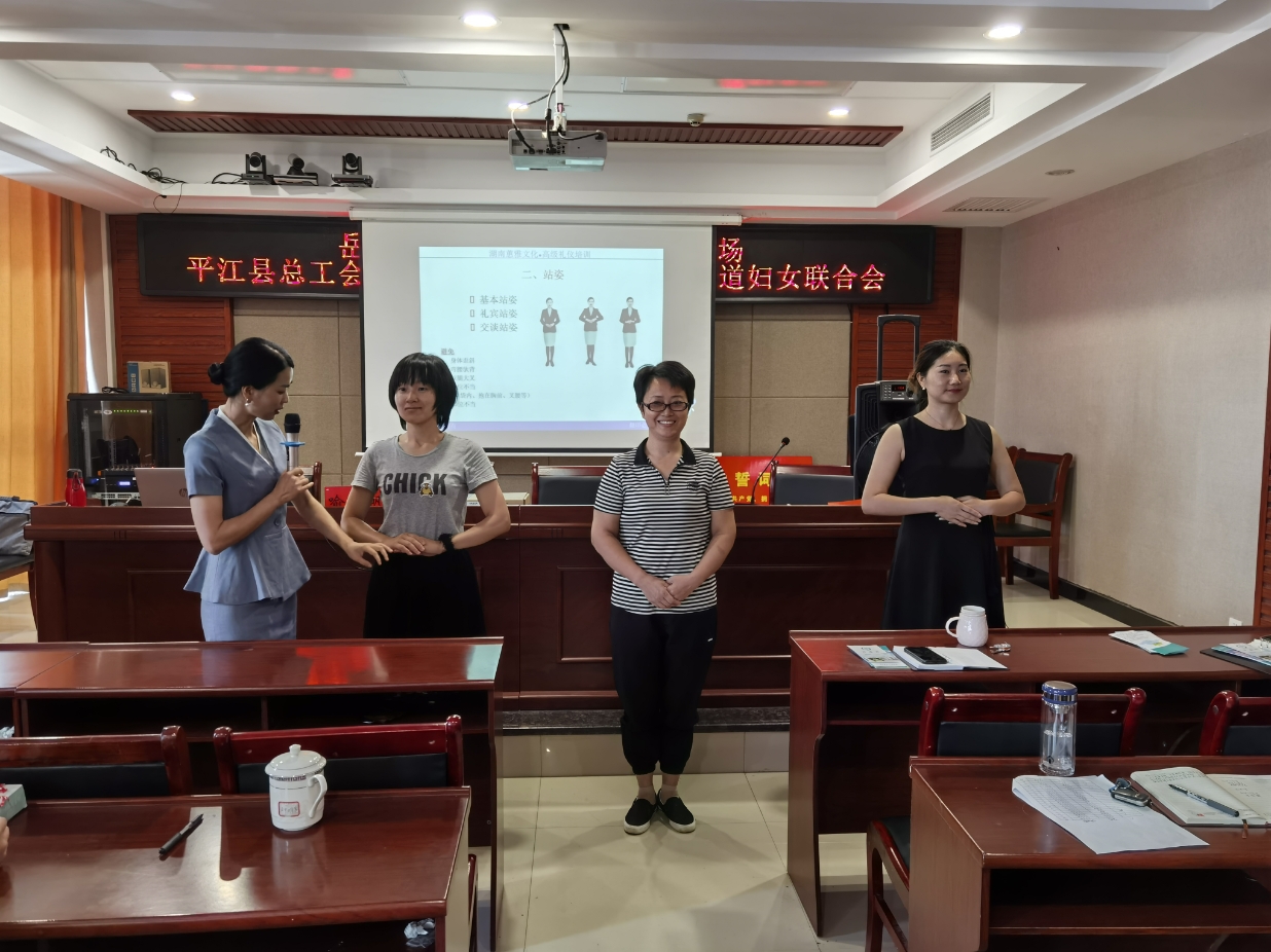 在第二堂讲座中,岳阳市总工会芙蓉公益讲堂讲师、中华文化促进会礼仪文化推广大使喻一帆以《形象礼仪——成功人生,赢在形象》为题,用幽默生动的语言、详实的案例,从女性日常工作生活中的言谈举止、仪容仪表等方面,深入浅出地诠释了女性礼仪的内涵和塑造女性良好形象的技巧,着重讲解了在接待工作中的注意事项,特别强调了接待群众来访时要态度亲和、耐心解释,并为大家示范了职场中站、坐、走、拍照等规范动作,还介绍了职场穿搭要领。同时,通过现场的演示与互动,让在场的女职工直接参与到各种情景模拟之中,以练促学,让女职工直观、快速地掌握课程内容。