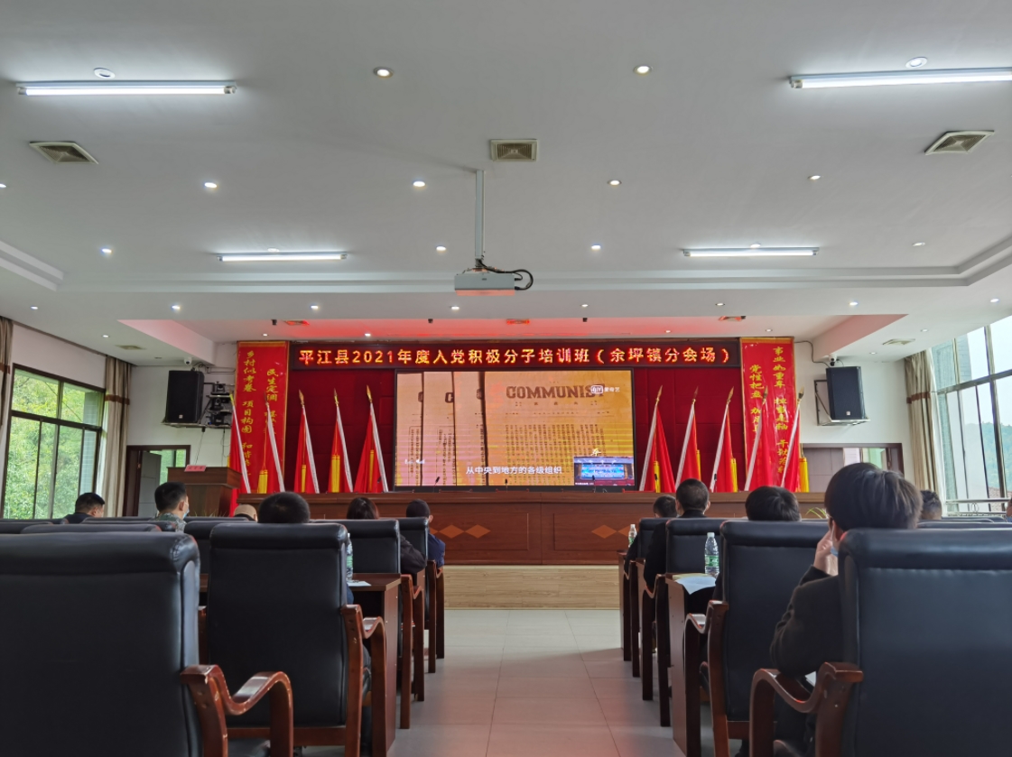 为进一步做好2021年下半年发展党员工作,加强入党积极分子队伍建设、提高思想政治素质。10月22日,平江县2021年度入党积极分子培训班(余坪镇分会场)在镇机关四楼会议室举行,全镇27名入党积极分子参加。