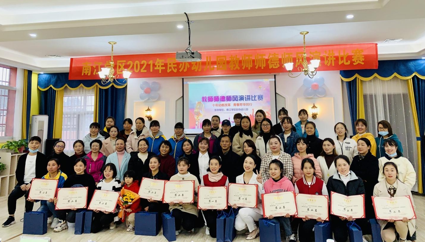 经过评委们公开、公平、严谨的评定,最终来自红缨幼儿园的李丹、金贝儿幼儿园的关娟获评一等奖。经过本次演讲比赛得到了该学区的高度重视与支持,同时也得到了南江各民办园园长的大力支持。主办方表示,此次师德师风演讲比赛既接地气,又展示了幼师们青春的风采,激发了全体幼师爱岗敬业、无私奉献的工作热情。(李锋 陈怀瑞)