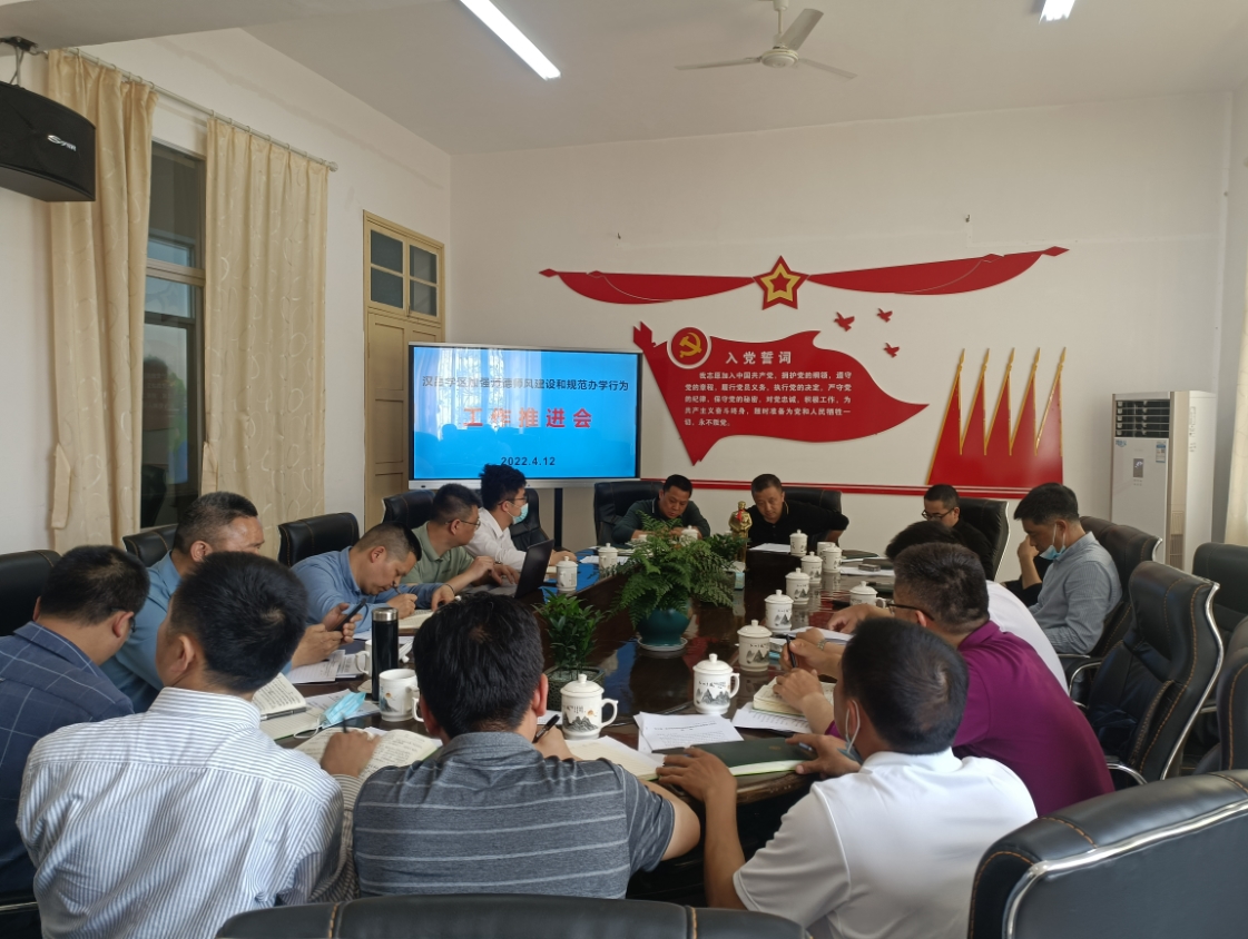 为进一步加强教师职业道德建设,准确把握新时代教师队伍建设的使命担当,努力建设一支高素质的教师队伍,4月12日下午,汉昌学区管理办在三阳中学召开加强师德师风建设和规范办学行为推进会,学区负责人及城区十校校长参加。