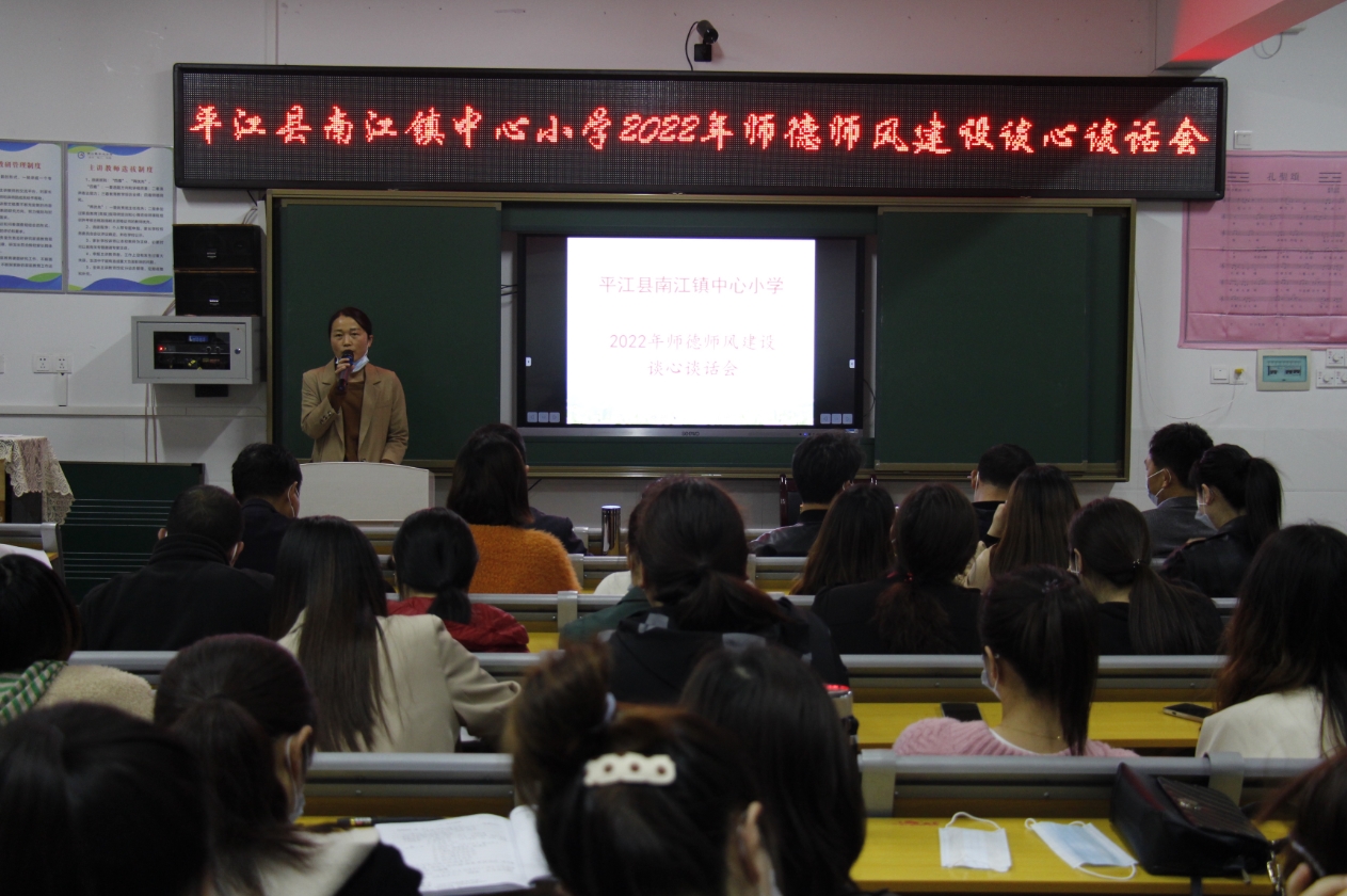 在南江镇中心小学分会场,该校校长朱良娅就如何贯彻落实师德师风建设总要求作了主持发言。学区专干罗怡春宣读了县教育局关于近几年师德师风典型案例的处理通报,要求各校以案说法,以案明纪,做到严以修身、心存敬畏,牢牢守住师德师风这根底线、红线、基准线。