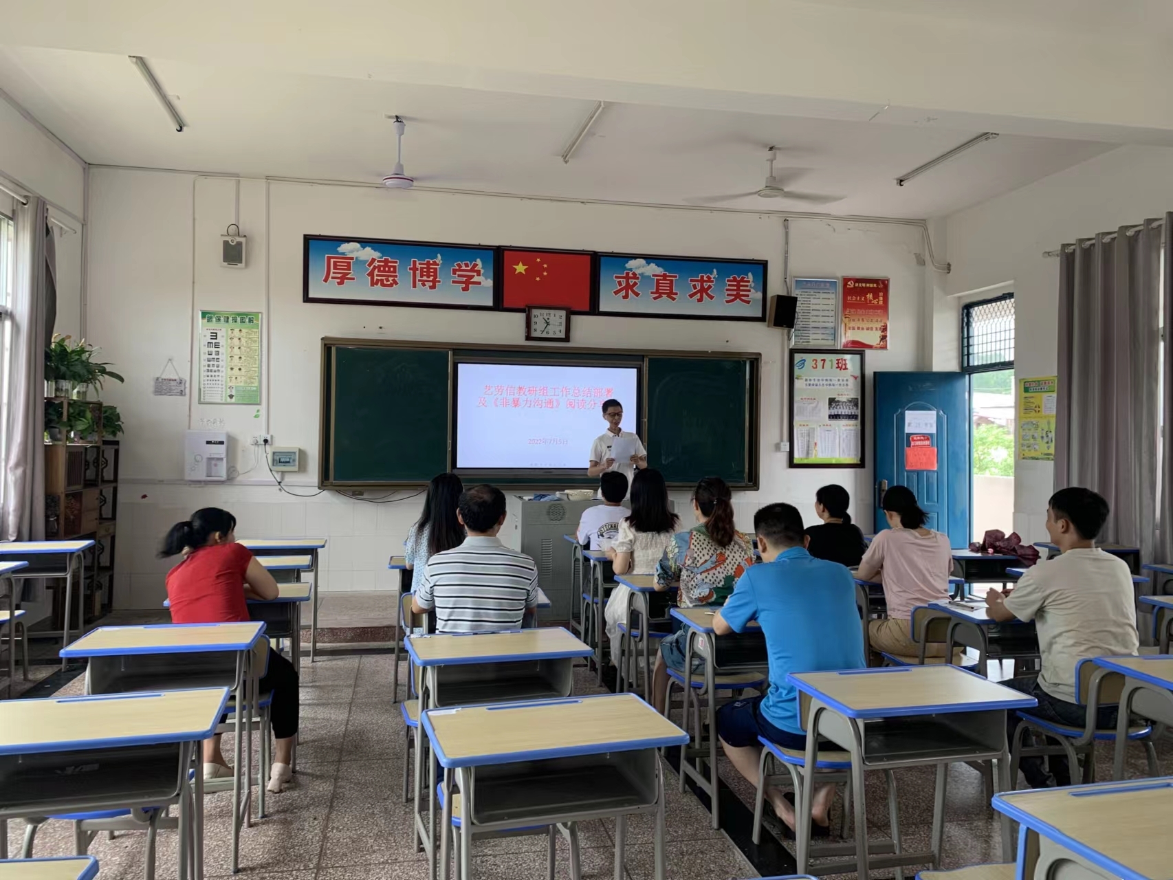 全体老师携带《非暴力沟通》和读书分享稿到指定地点参会,教研组长对本期教研工作进行总结发言,并就下期组内针对新课标学习计划及要求、资深教师示范课安排、青蓝工程蓝方教师安排等教研工作作部署后,17个阅读小组组长记录教师阅读情况检查登记,并根据阅读情况评选优秀阅读践行者。