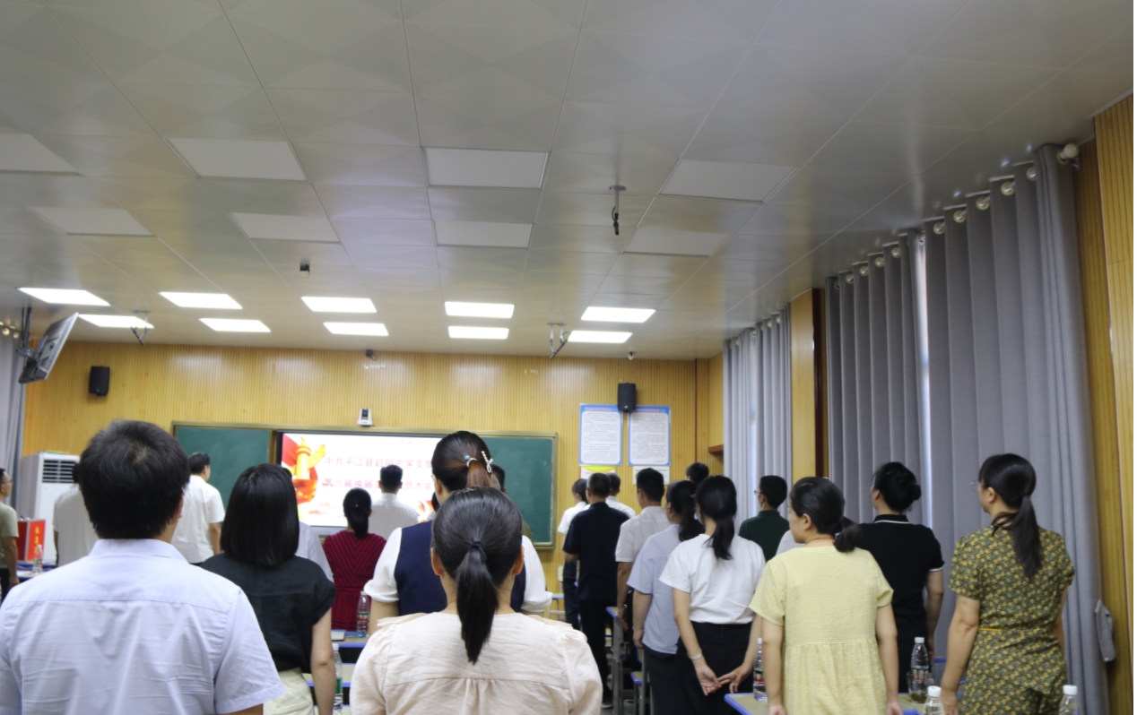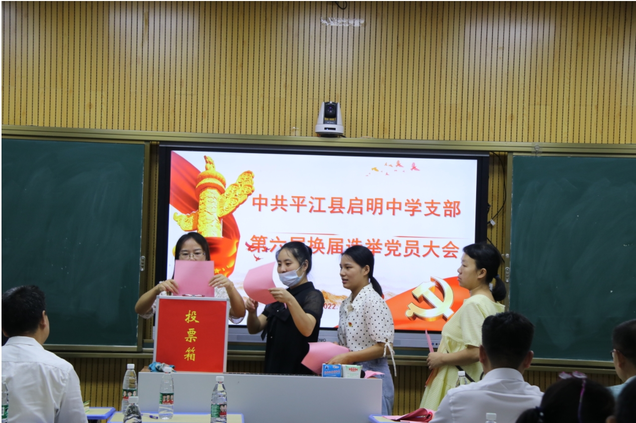 继往开来夯基石,砥砺奋进踏新程。根据《中国共产党基层组织选举工作暂行条例》规定,8月13日上午,中共平江县启明中学支部在学校承泽楼录播室召开第六届支部委员换届选举党员大会。全体党员参与,选举大会在庄严的国歌声中拉开序幕。