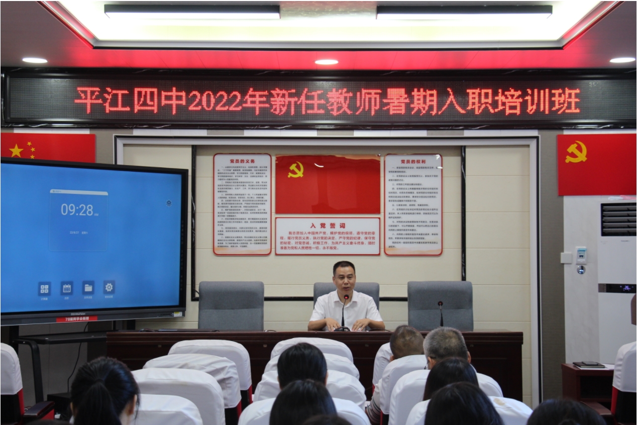 8月27日至28日,平江四中举行了为期两天的2022年秋季新入职教师暑假培训班。邹雨露等11名充满激情和朝气的新教师加盟教师团队,参加了有关政策法规、师德师风、校史校情、规章制度、课堂教学与管理策略的学习,并聆听了市县级优秀班主任成长经验分享,在形式多样的专题讲座和交流沙龙里汲取丰富的营养尽快融入新的工作环境,全面提升履职适岗能力。