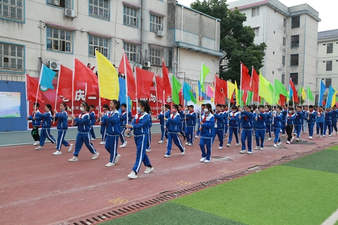 “一个中心 两个基本点”“不忘初心 牢记使命”“全面推进中华民族伟大复兴而团结奋斗”……表演和前期筹备的过程,既是沿着红色的足迹,感怀那些峥嵘光辉岁月的历程,也是一堂同向同行的思政课和党史学习教育。该校师生们以体育节开幕式为载体,通过班级方阵对中国共产党党史的学习进行展示,以一堂“行走”的思政课致敬中国共产党已走过的百年奋斗历程。