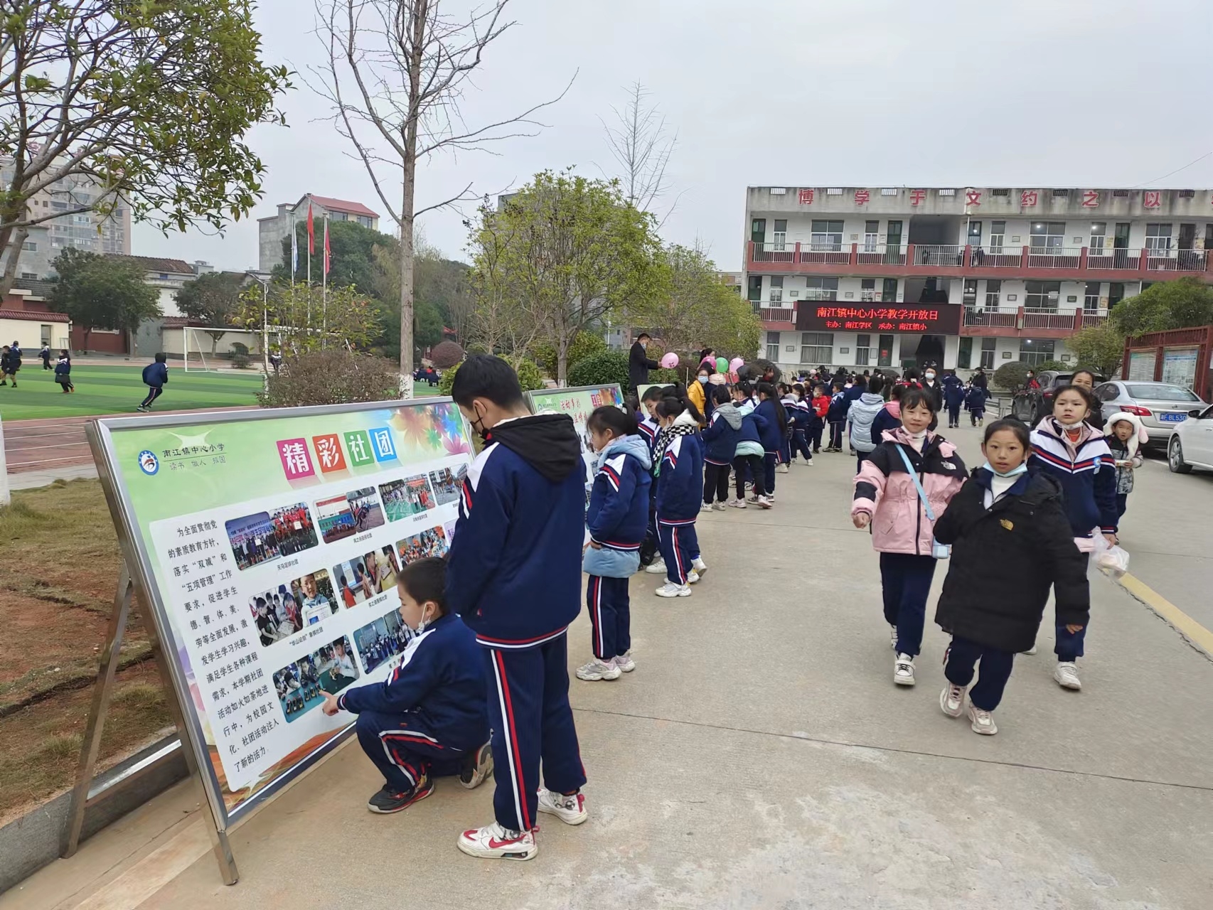 12月7日,南江镇中心小学为贯彻新课程标准理念,专注课堂教学研究,助力学生快乐成长,特举行全校性的教学开放活动,着重从特色教育宣传、精彩课堂展示、社团活动呈现三个方面接受全域性的检阅,并吸引了全镇及周边学校老师们和部分家长的参与,从而检验“双减”落实的深度,特色教育拓展的维度,教学教研打造的高度,展现教育发展的最好生态,让学生在快乐的氛围里健康成长,很好地发挥中心小学教研示范、辐射引领作用。