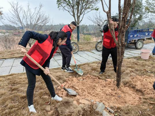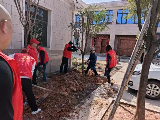 与此同时,各村(社区)的志愿服务队也在党委政府的号召下开展了植树活动,退休干部、老党员、妇女志愿者纷纷响应,他们热情高涨,分工合作,有的挖树坑,有的扶苗、有的浇水、有的填土……在春日的暖阳下,尽情释放满腔的爱绿、护绿热情,为创建绿色村舍添砖加瓦。