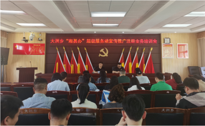 大洲乡第一时间组织召开“湘易办”超级服务端宣传推广注册业务培训会,就“湘易办”注册流程和操作使用作详细讲解,要求乡村两级干部率先注册应用“湘易办”,熟悉医保、社保查询等各类实用功能和使用方法,确保乡村两级工作人员都能当好“推广员”,同时将“湘易办”超级服务端推广工作纳入年度考核指标,实行“日排名、周通报”制度,安排专人负责统筹协调和数据统计,进一步明确工作任务,压实工作责任。