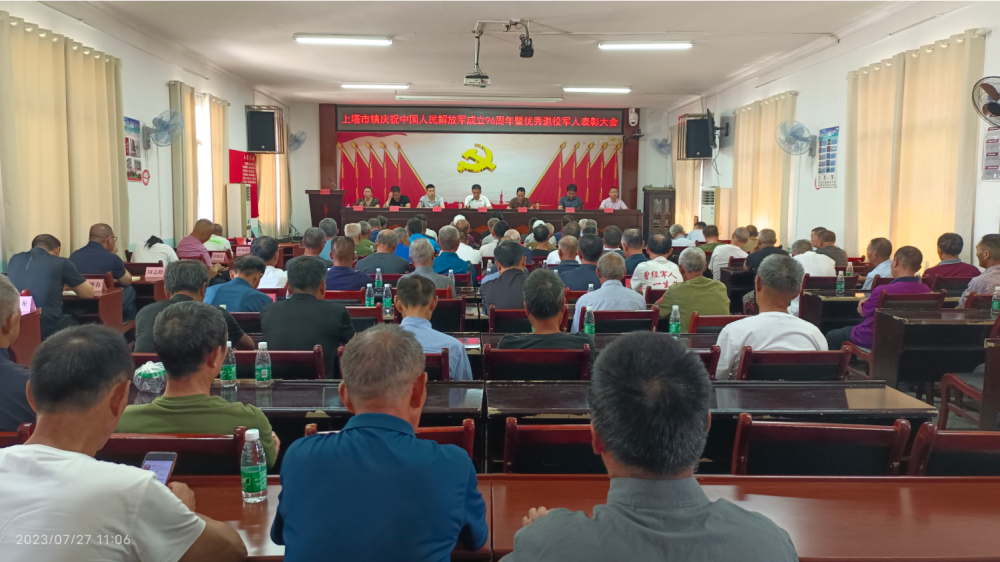 为庆祝中国人民解放军建军96周年,进一步激发退役军人担当感、使命感。7月27日下午,上塔市镇召开庆祝中国人民解放军成立96周年暨优秀退役军人表彰大会。全镇优秀退役军人、参战军人代表、其他优抚对象代表、全体机关退役军人及各村(社区)支部书记共120余人参加会议,会议由镇党委副书记崔灿伟主持。