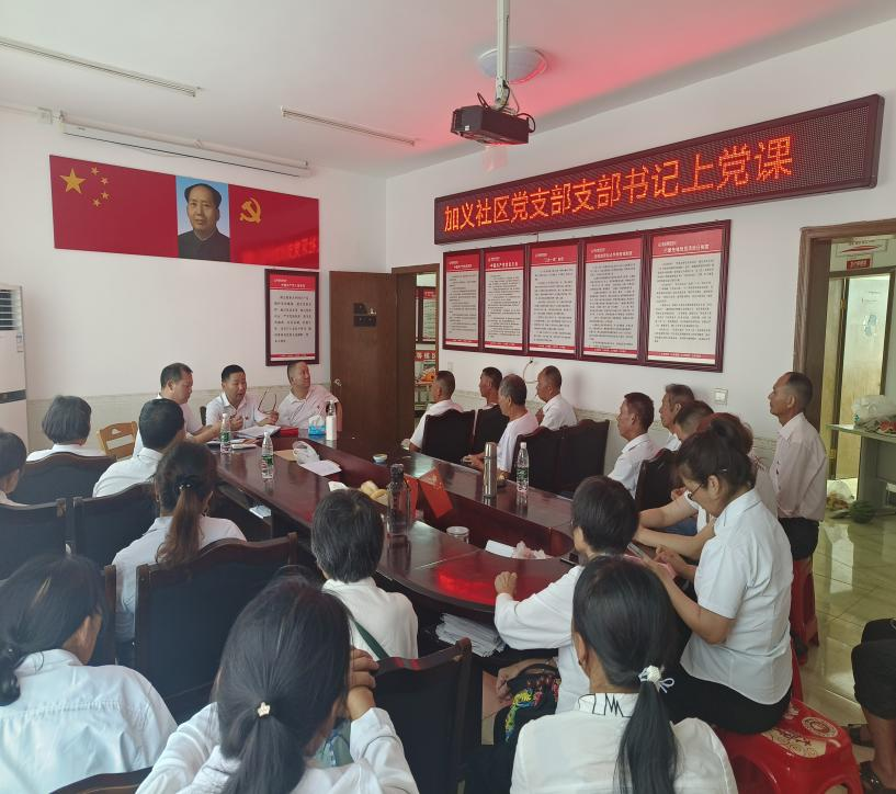 在加义社区,社区支部书记杨发根深入解读了伟大建党精神的丰富内涵,并结合工作实际,对如何践行为民服务、提高村民幸福感和满意度进行了阐述。