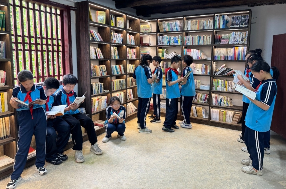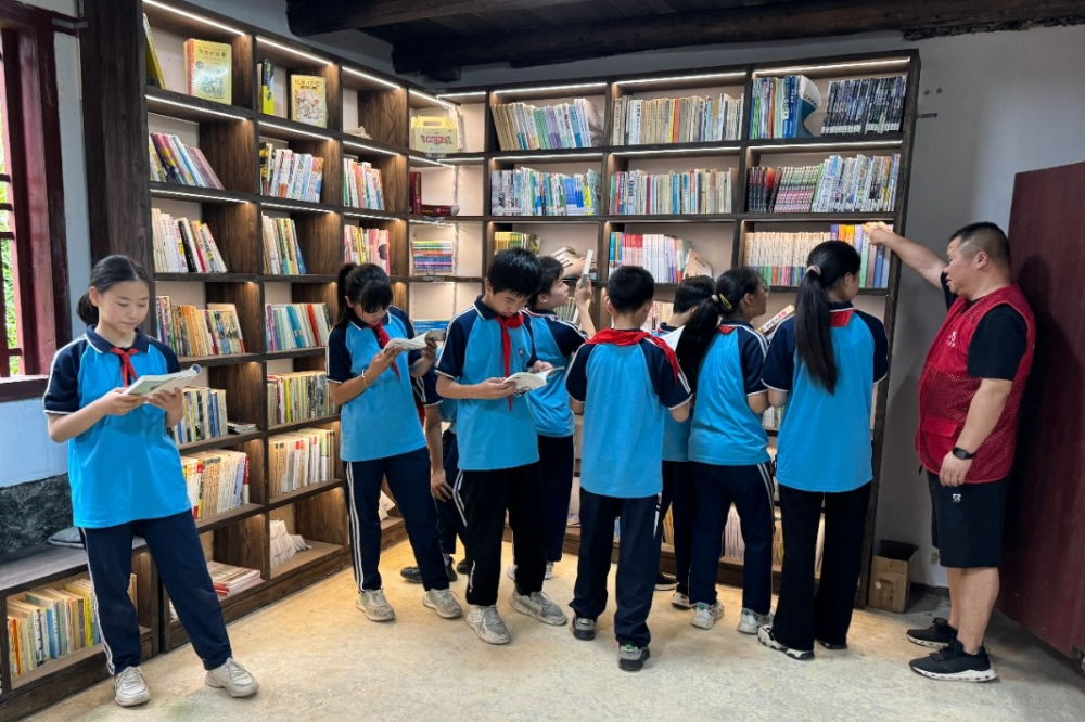 在志愿者的带领下,孩子们来到农家书屋里挑选着各自喜爱的书籍进行阅读,志愿者从旁答疑解惑,现场阅读氛围十分浓厚。