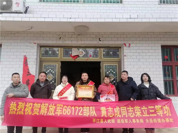现役军人黄志成荣立三等功。接过承载着荣誉的喜报,黄志成父母脸上洋溢着欣慰的笑容:“感谢政府的关怀,孩子在部队一直很努力,此次荣立三等功离不开部队的培养,我们全家会继续鼓励孩子安心服役,为祖国和家乡做出更大贡献。”