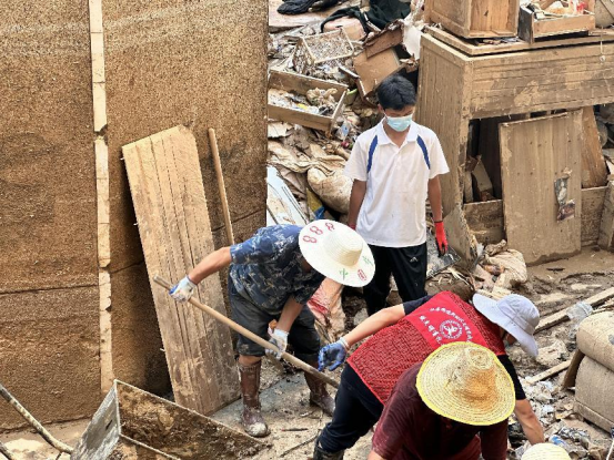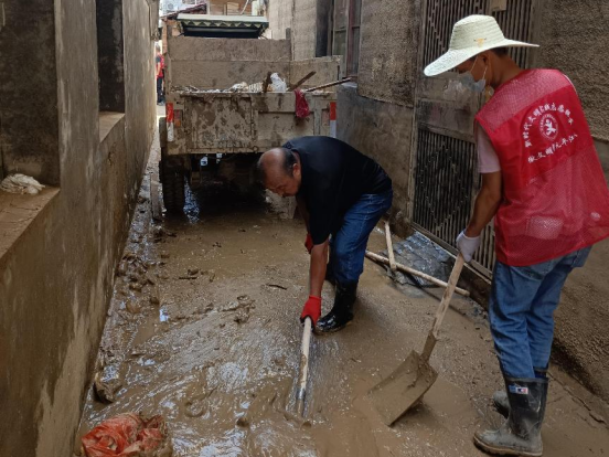 次日早晨六点,叶再友就主动联系工作人员,询问哪里需要做志愿活动,工作人员指引他们去汉昌街道受灾最严重之一的城东村,叶再友手拿铁锹带着孙子投入清淤的队伍中。两人埋头苦干,尽心尽力,半天下来衣服汗湿得不用拧就直往外淌水。旁人都夸这对爷孙:“既能干又了不起!”、“他(叶再友)那么肯做,一个人怕是能抵五个人嘞!”哪怕是中午休息的时候,叶再友和他孙子也只是稍坐片刻,又继续拿着铁锹到现场清理淤泥,生怕浪费了任何一点时间,仿佛根本不知疲倦。