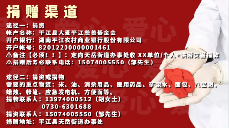 洪水无情、人间有爱!在这最吃劲、最关键的紧要关头,社会各界爱心企业、爱心人士发扬“一方有难、八方支援”的互助精神,伸出援手、奉献爱心、送上真情、点燃希望,踊跃捐款捐物,全力支持天岳街道防汛抗灾工作,积极帮助受灾群众重建家园、共渡难关。