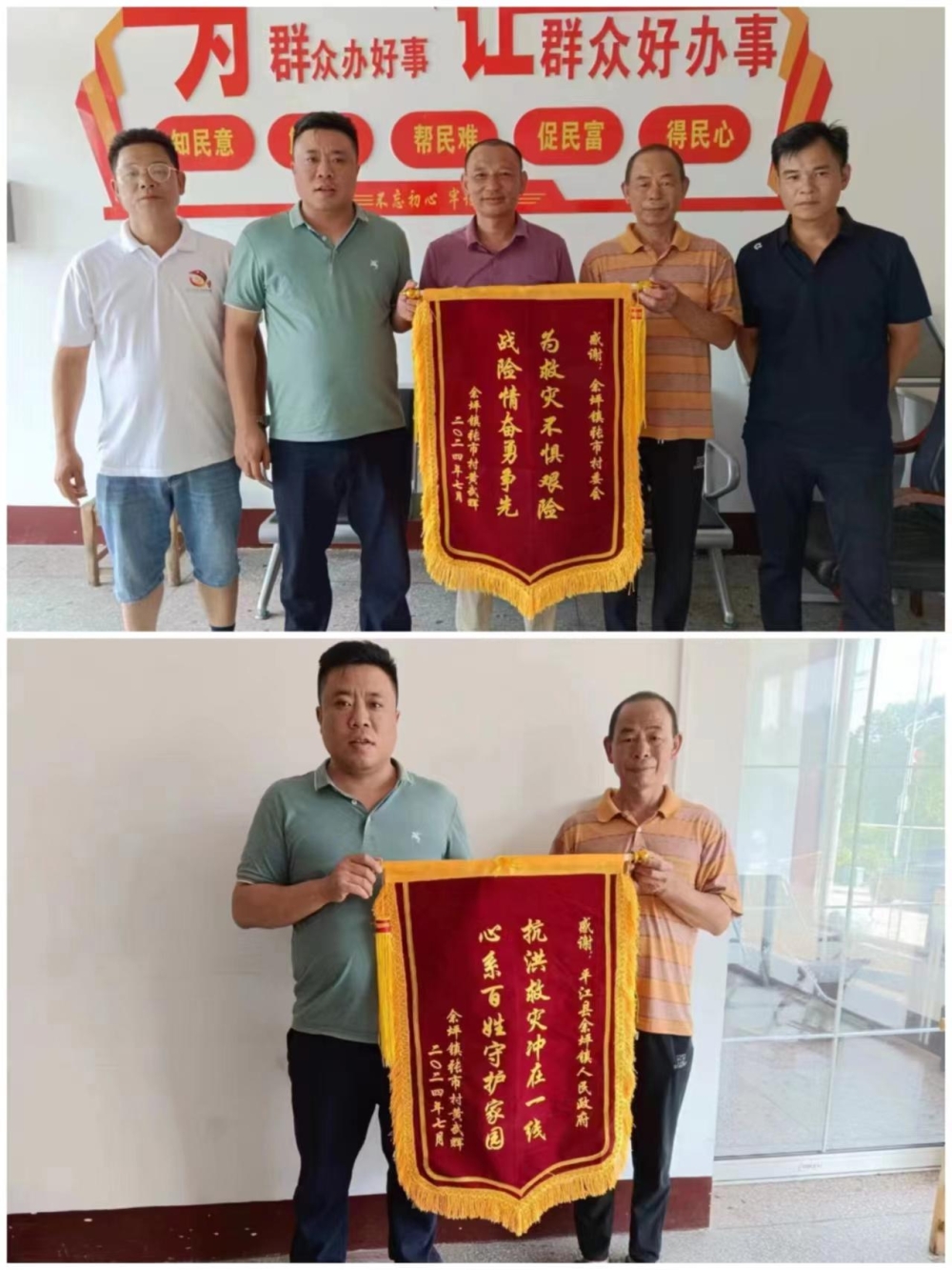 “你们辛苦了,要不是你们,我这大半辈子心血都要没了!”7月10日下午,余坪镇张市村村民黄武辉来到张市村村委员会,赠送印有“抗洪救灾冲在一线,心系百姓守护家园”的锦旗,以此来表达对余坪镇党委政府联村干部、张市村支村“两委”诚挚的感谢和敬意。