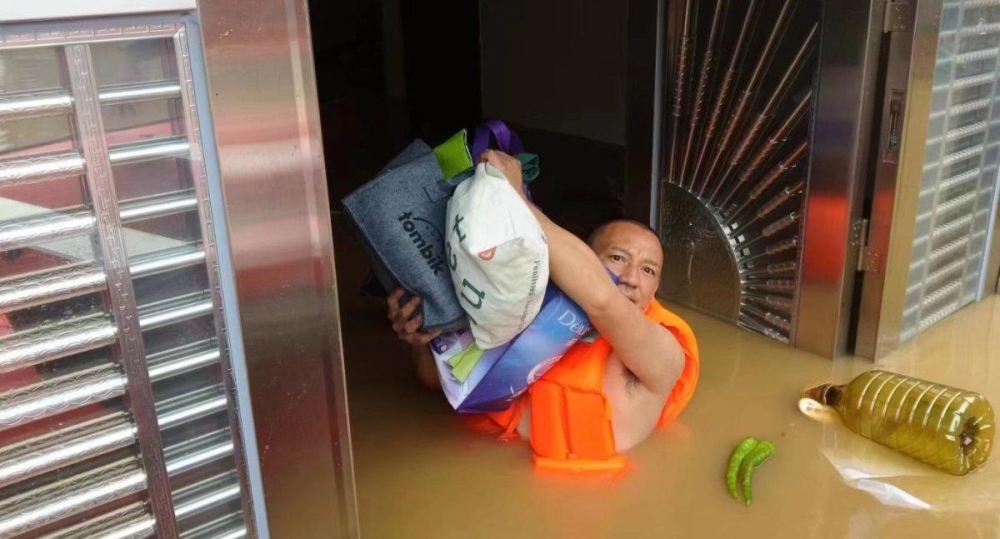 自6月18日起,我县持续遭遇强降雨,导致汨罗江河水迅猛上涨,迎来了七十年一遇的特大洪涝灾害。7月1日,河水涨势加大,淹没了中元组所有房屋,镇、村干部一趟又一趟地把群众进行转移。由于转移仓促,村民黄武辉的现金7万余元,还有金器首饰等全部忘记带走,黄武辉夫妇惊恐万分,因为这是两夫妻的全部收入。在了解情况且将人员全部转移至安全地带后,余坪镇迅速组织以书记皮扩章带队的救援队,前往黄武辉家中进行财产救援,在到达黄武辉家中,由于水势过高,无法进入屋内,在考虑到财产被冲走的情况下,皮扩章脱掉衣服,跳入几米深的水中,从正门潜水进屋内,上到二楼,找到钱财金器,从二楼窗户递给船上同志,成功地保住了黄武辉家的财产。