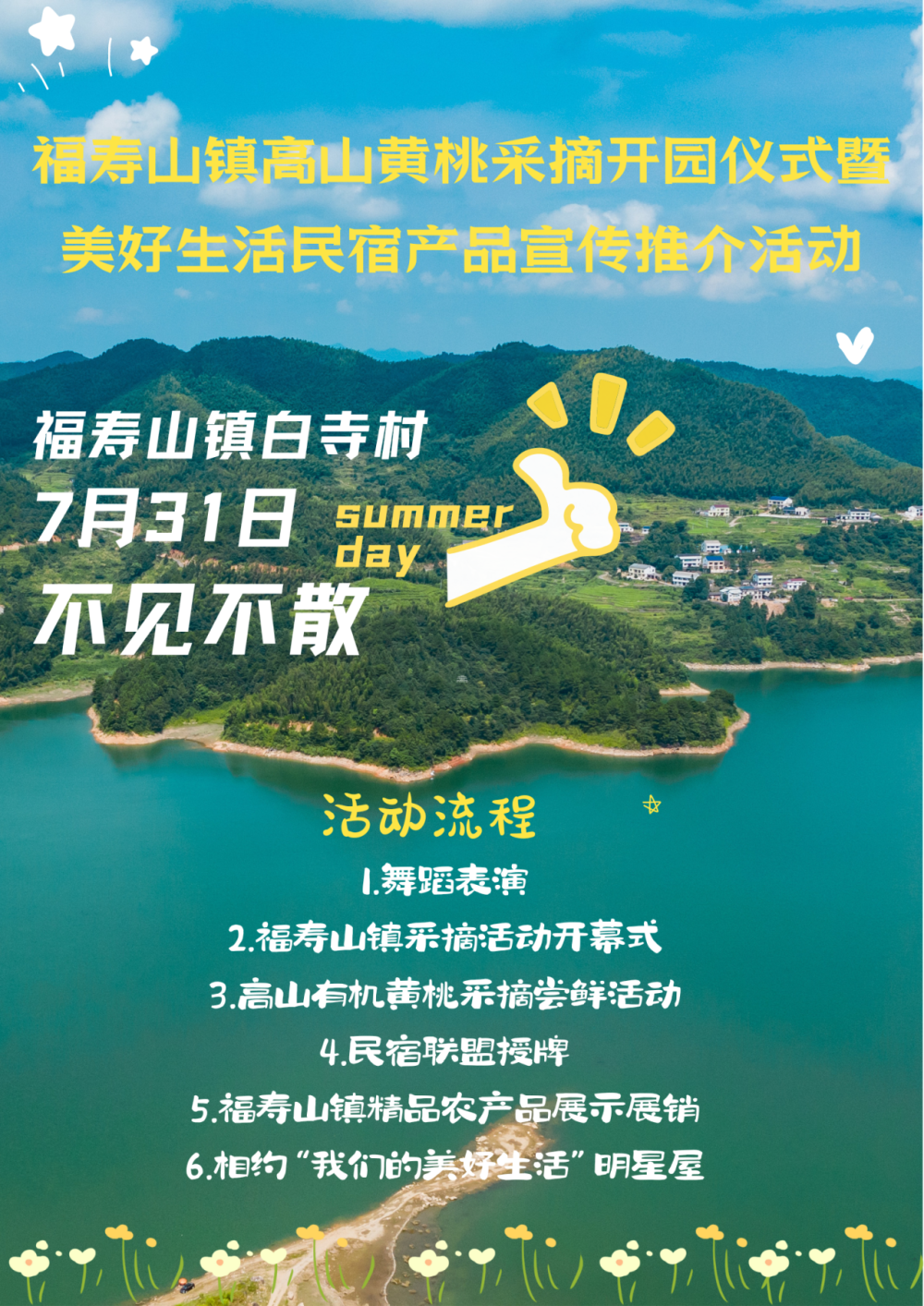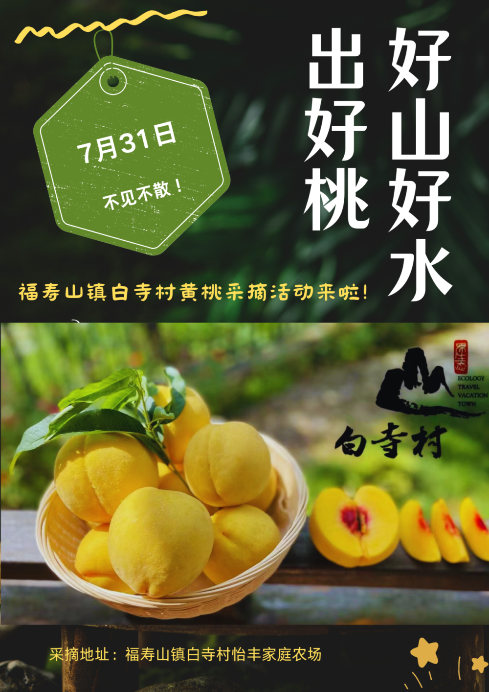 仅剩1天,福寿山镇高山黄桃采摘开园仪式暨美好生活民宿产品宣传推介活动,将于7月31日10点开幕。每一刻的等待都充满了期待,让我们共赴这场关于“白寺村”的浪漫之约。