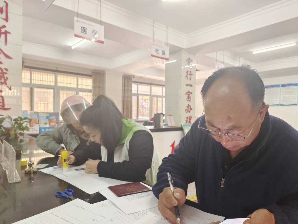 4月15日上午,八点不到,龙门镇便民服务中心门口便聚满了排队领表的“特殊群体”。大口塅村的刘大爷常年坐着轮椅,是“白绿背心”们一起抬着进门,帮助他填写好的评残资料,他笑着竖起大拇指说,“你们这次活动的服务真省心,我点个赞。”
