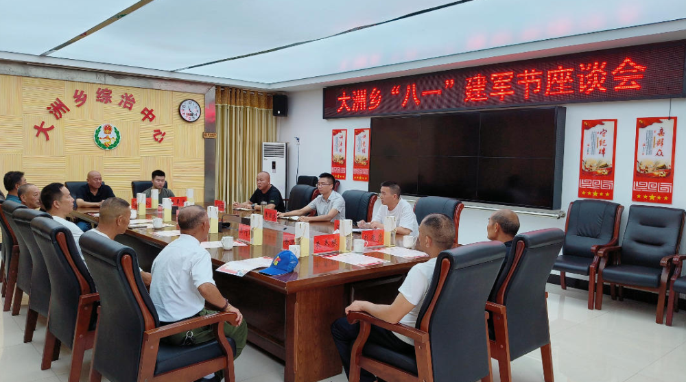 为庆祝中国人民解放军建军98周年,进一步弘扬拥军优属光荣传统,7月29日,大洲乡组织召开2025年“八一”建军节座谈会。乡党委书记黄颖龙出席会议并讲话,党委委员湛高兴主持会议,退役军人服务站站长吴人意以及退役军人代表参会。