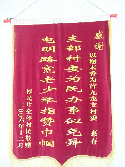 村民们给谢茉香送的锦期,表达感谢之情黄振摄