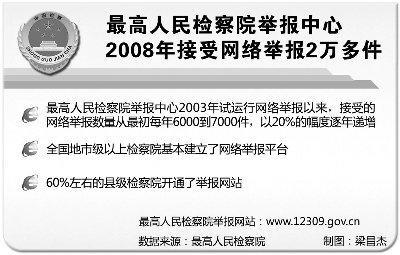 今年5月31日12309举报热线及举报网站域名www.12309.gov.cn试运行。昨天最高检向记者证实,今天,该电话和域名正式启用。