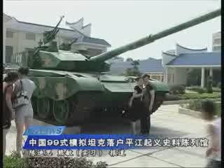 据平江起义纪念馆有关负责人介绍,为纪念“八一”建军节和庆祝建国60周年,陆军第三十八集团军为表示对在平江起义中英勇牺牲的革命烈士们崇高的敬意,特向我县捐赠了这辆按照1:1比例,复制的中国99式摸拟坦克。这辆模似坦克将永久停放在史料陈列馆内,向游客免费展示,从而使更多的人了解军事常识,接受爱国主义教育。