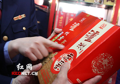 执法人员在对五岭大市场南苑6栋113门面检查时发现,柜台上摆放的“泸洲老窖”酒包装粗糙,有别于市场上销售的“泸州老窖”白酒。在仔细甄别后发现,该店销售的泸洲老窖白酒“洲”字与真正的泸州老窖存在区别,且生产厂家也不同。“这些'泸洲老窖'包装与真的泸州老窖极为相似,消费者比较难辨认,属于高度仿真的假冒酒。”市工商行政管理局消保科科长邓文芳表示。