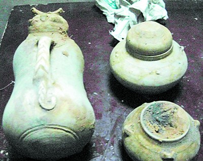 8月29日下午3时许,村民胡某等人带上锄头来到洞穴处“挖宝”,很快挖出了一些古色古香的坛罐。胡某说,他们挖出那些形状各异的坛罐后,原以为里面至少会有古币什么的,谁知道把坛子罐子掏空了,里面也只有泥巴。