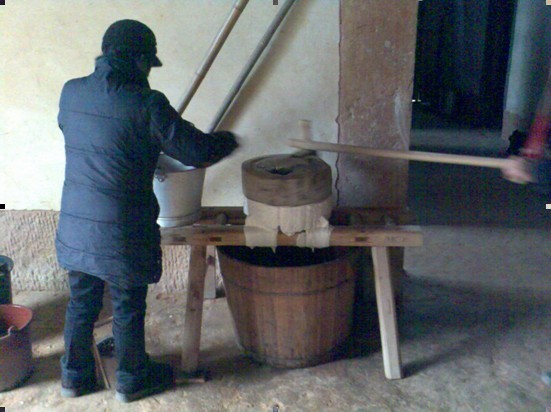 1月27日,农历小年。平江县龙门镇新和村家家户户都在用传统石磨磨制过年豆腐。这种历史悠久、古朴环保的迎“年”方式使乡村中变得“年”味十足。图为该村村民何成谷家正在用石磨磨制过年豆腐。(平江县龙门镇新和学校:何大干 摄)